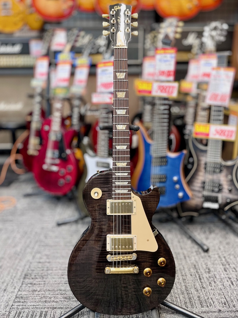 クッキリと浮き出た派手なフレイムメイプルトップにゴールドハードウェア採用等高級感のあるルックスです。