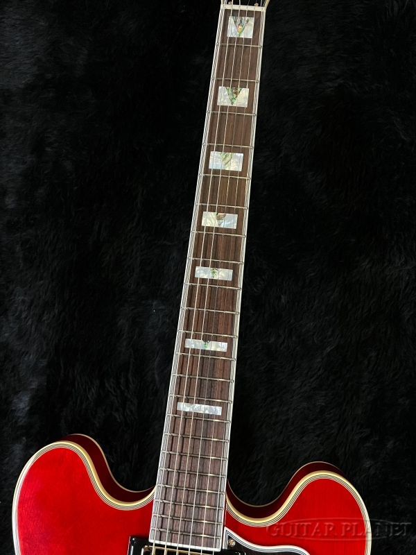 ワンピースマホガニー・ネックは快適な60年代Cシェイプを採用し、ローズウッド指板には22本のミディアムジャンボフレットが打たれ、美しいマザーオブパール・ブロックインレイとアバロンによるトライアングル・インレイが施されています。