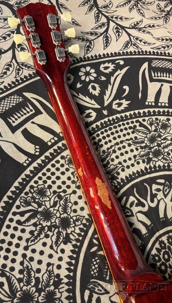 状態は全体的にコンディションが良く。ボディバックのアニリンダイが自然とバインディングに溶け込んではおりますが、ネック良好。フレット8~9割の残量。トラスロッドも準反り・逆反りともに余裕御座います。改造箇所なども無くコレクターの方にもお勧め出来る個体です。(当時のハットノブは特性上割れる素材の為、ヒビは入っております。)