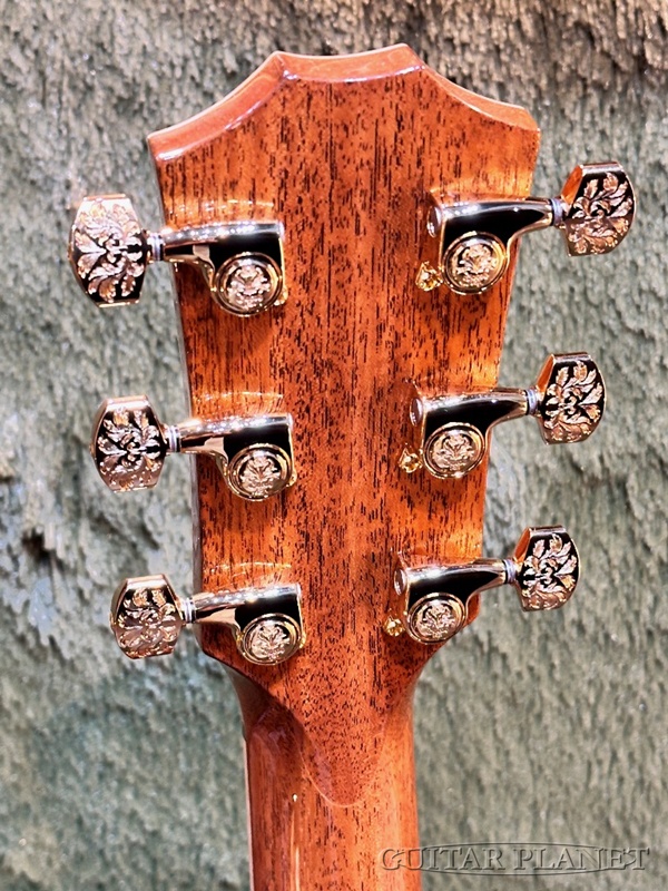 Gotoh製の彫金が施されたカスタムペグや、スモーキーエボニーを使用したヘッドの突板など、