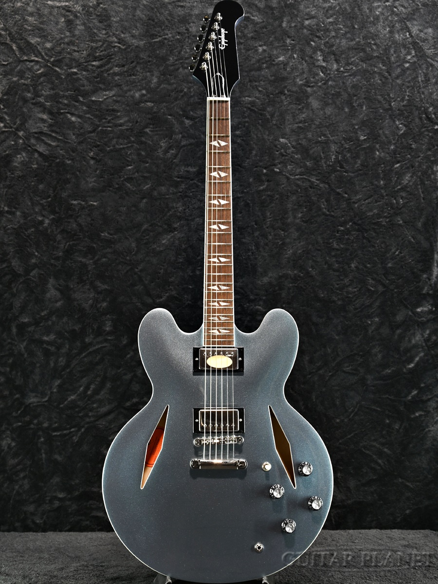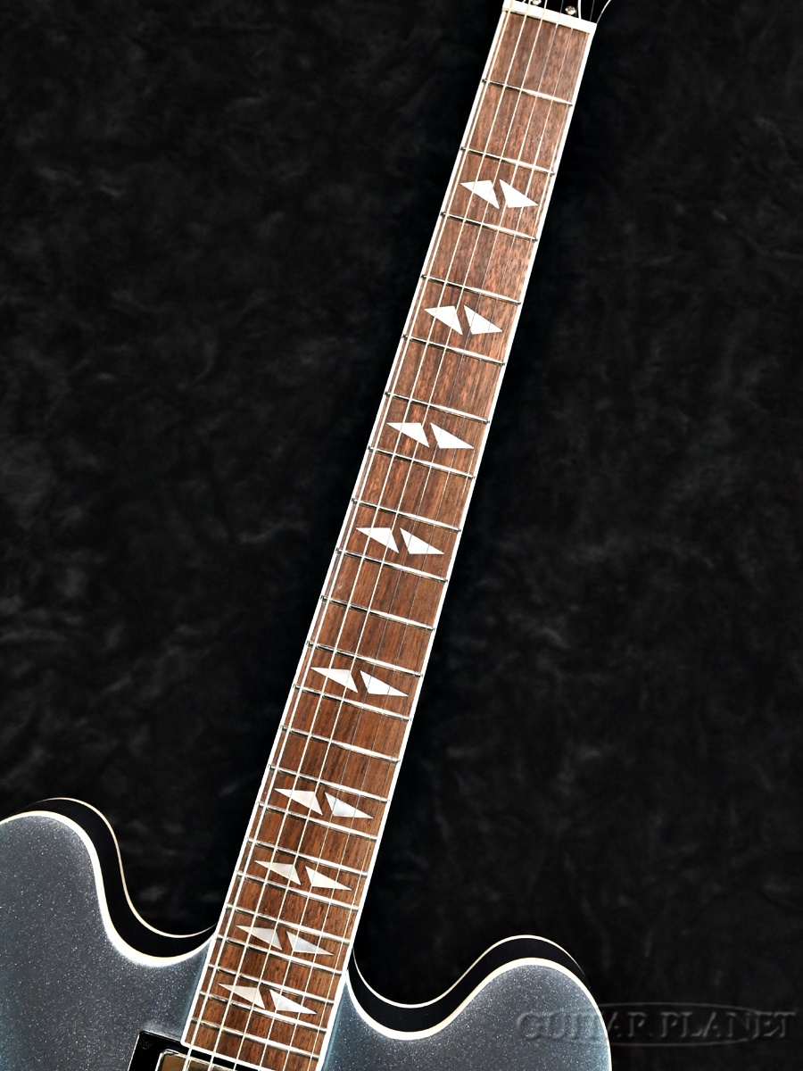 バインディングの施されたダイヤモンドホール、セミホローのESボディ、楕円形のCシェイプ・ネックプロファイル、ワンピース・マホガニーネック、Grover Mini Rotomaticチューナー、Trini Lopezスタイルのヘッドストック、スプリットダイヤモンドインレイが施されたローレル指板等、充実の仕様群を採用。