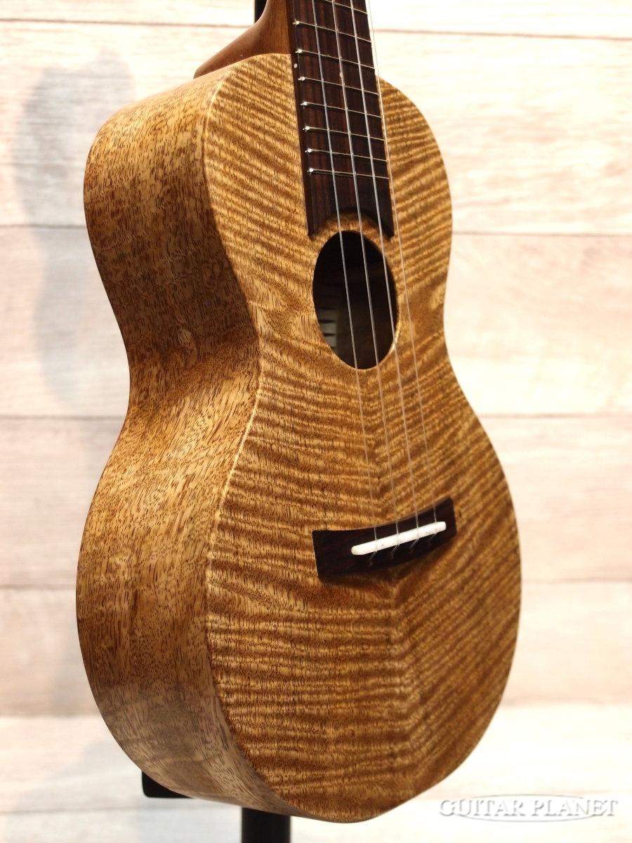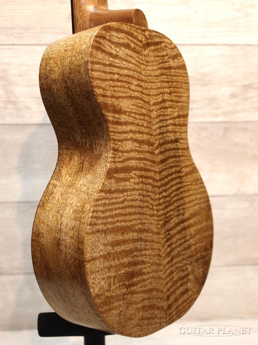 特徴的なカーリー杢が現れたハワイアンマンゴー材をボディ、ヘッド突板に使用しています。