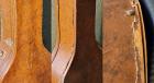 画像にあるようにブリッジのサドルスロット付近の割れを接着した形跡があります。