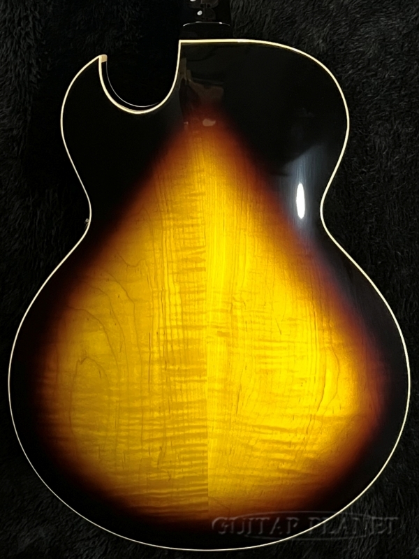 この度入荷致しました「Standard H-575」はセンターブロックを持たないフルアコースティックギターで、16インチ幅のメイプルボディ(オール単板)に、ローズウッドを貼り合わせたマホガニーネックがセットネック構造にてジョイントされております。
