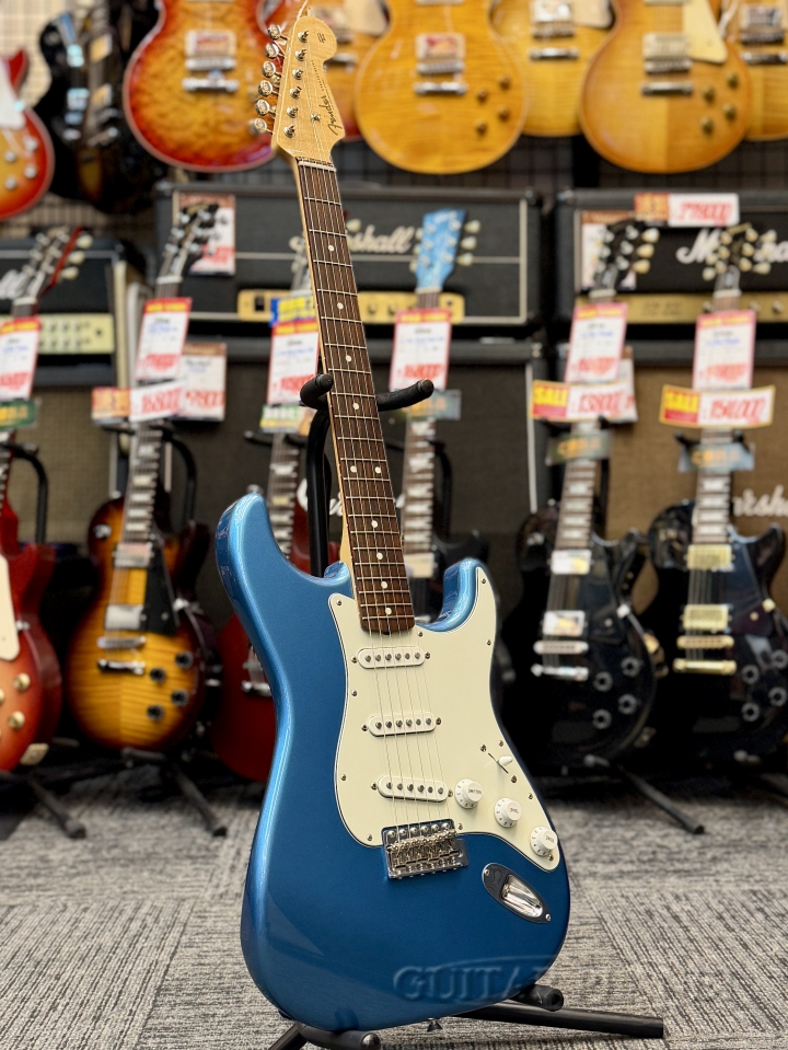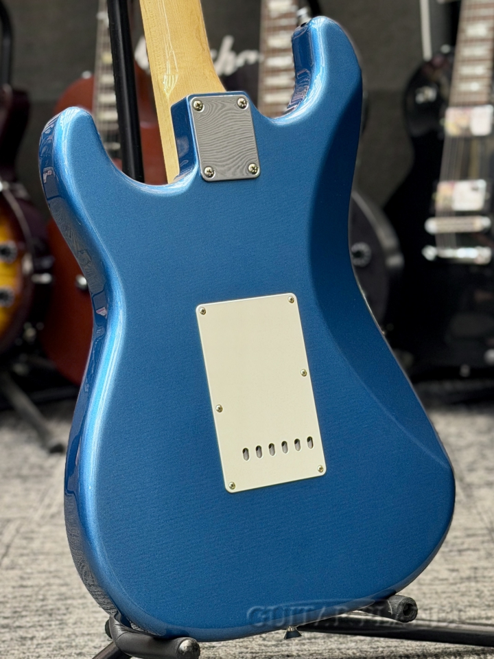 色鮮やかなメタリックカラーのLake Placid Blueがローズウッド指板に良く映える人気仕様の品です。