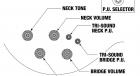- Controls, Pickup selector 2 Volume, 2 Tone, 3-way toggle switch