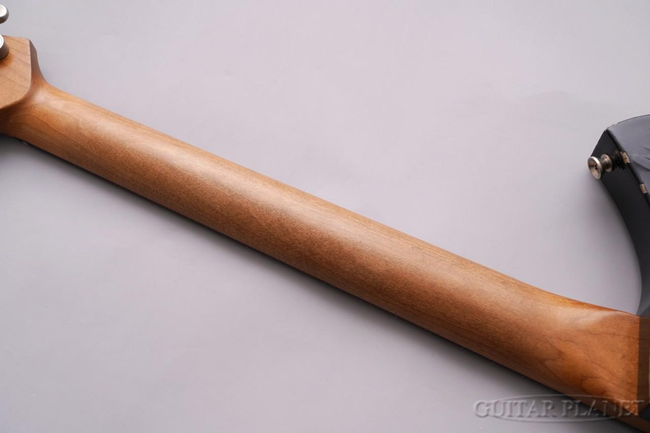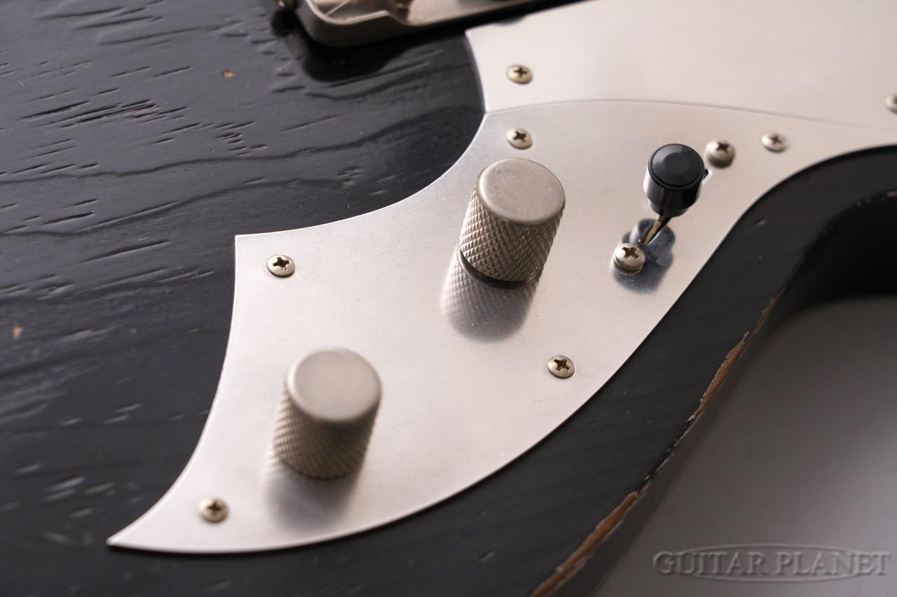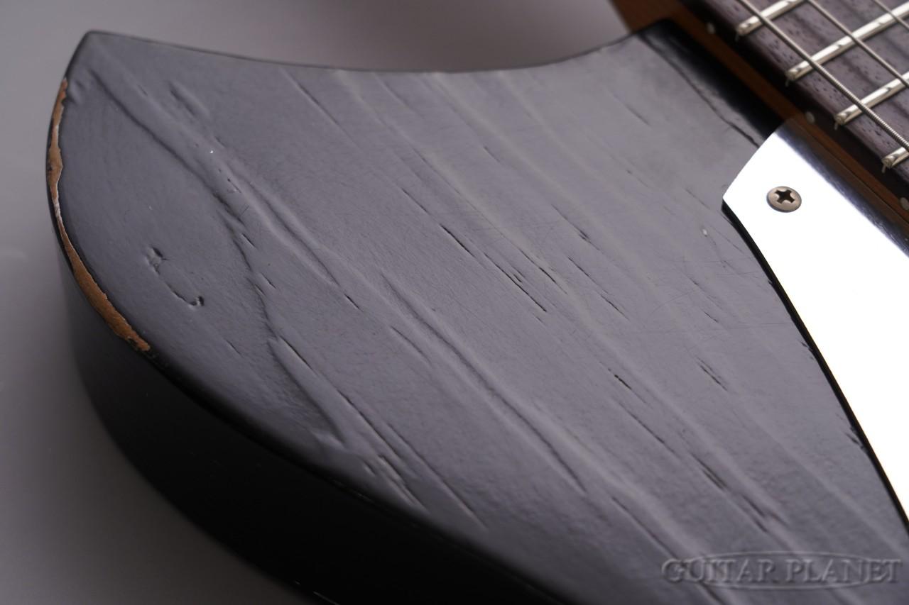 こちらの個体はしっかりとしたエイジングがされたブルブラックのボディ、アルミニウムピックガードなど、