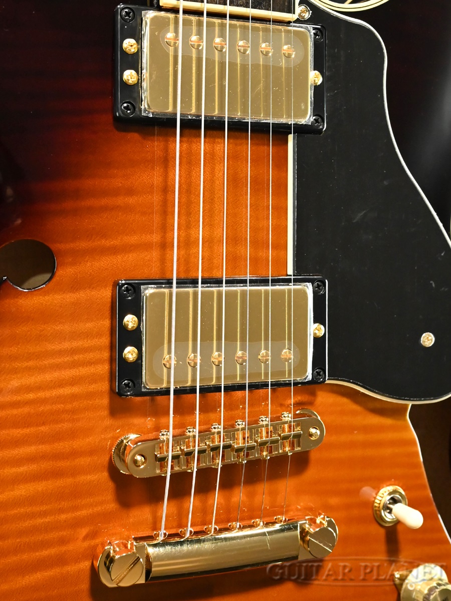 オリジナル・フラワーポット・インレイが施された風格のあるヘッドストックに、センターブロックにはスプルース材を採用し、セミホロウのマイルドなサウンドとレスポンスの良さを兼ね備えています。