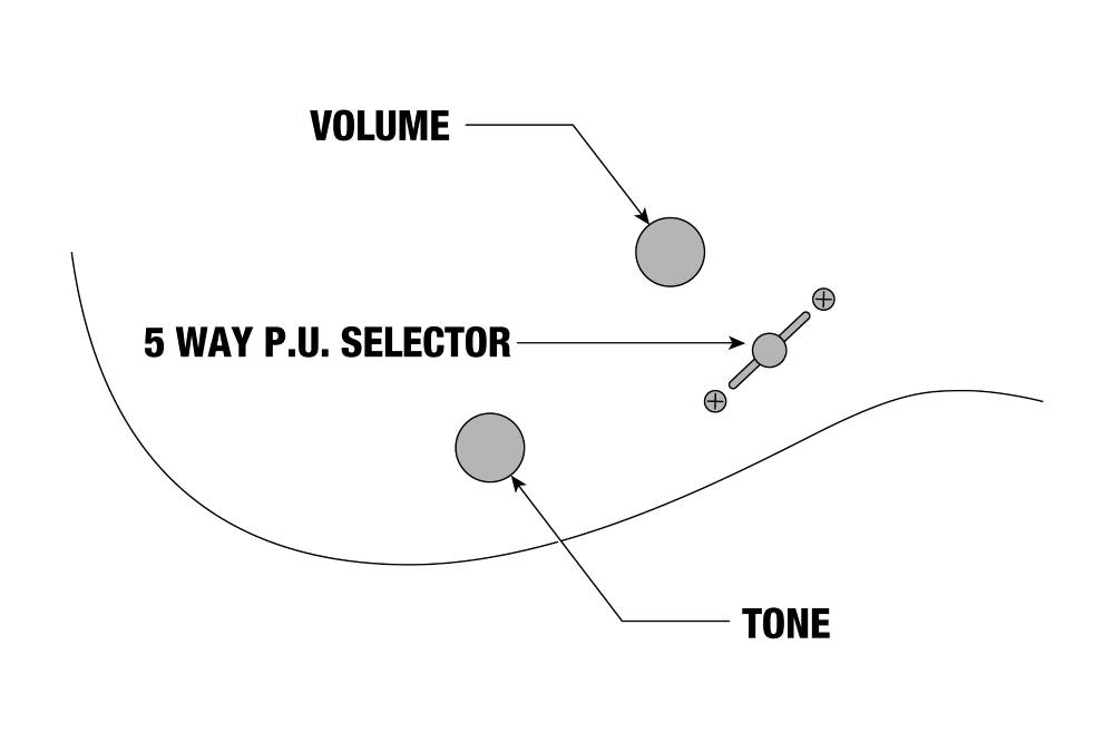 - Controls, Pickup selector 1 Volume, 1 Tone, 5-way lever switch