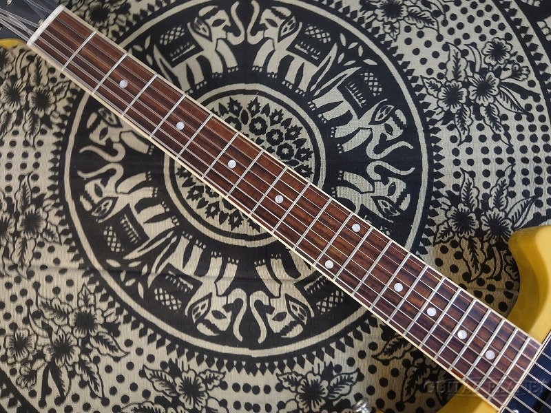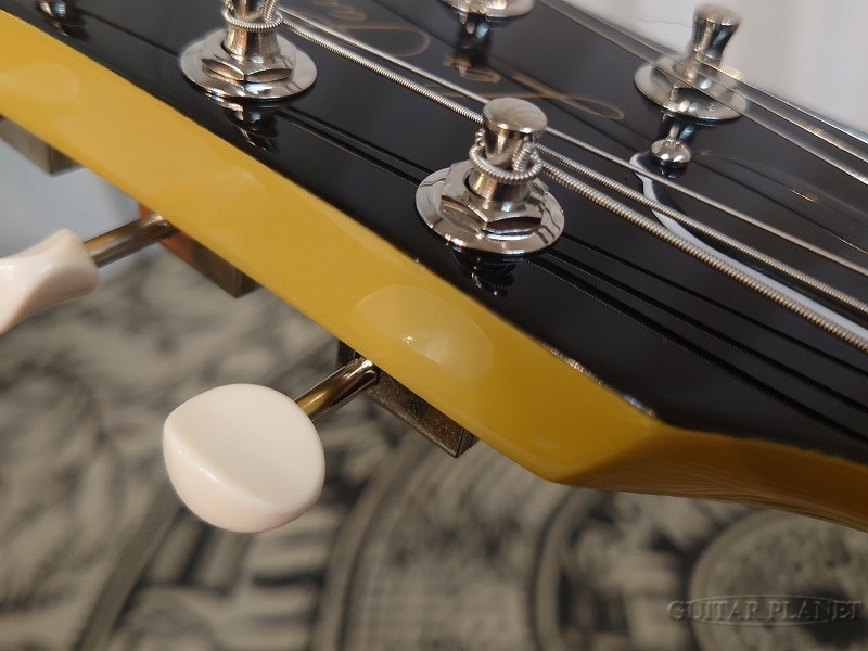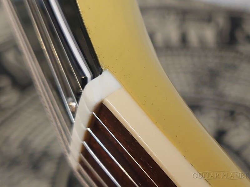 入荷時より6弦ペグヘッド際の打痕と1弦ナット際のバインディング痩せなどの外観瑕疵が確認する事が出来ます。