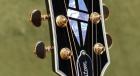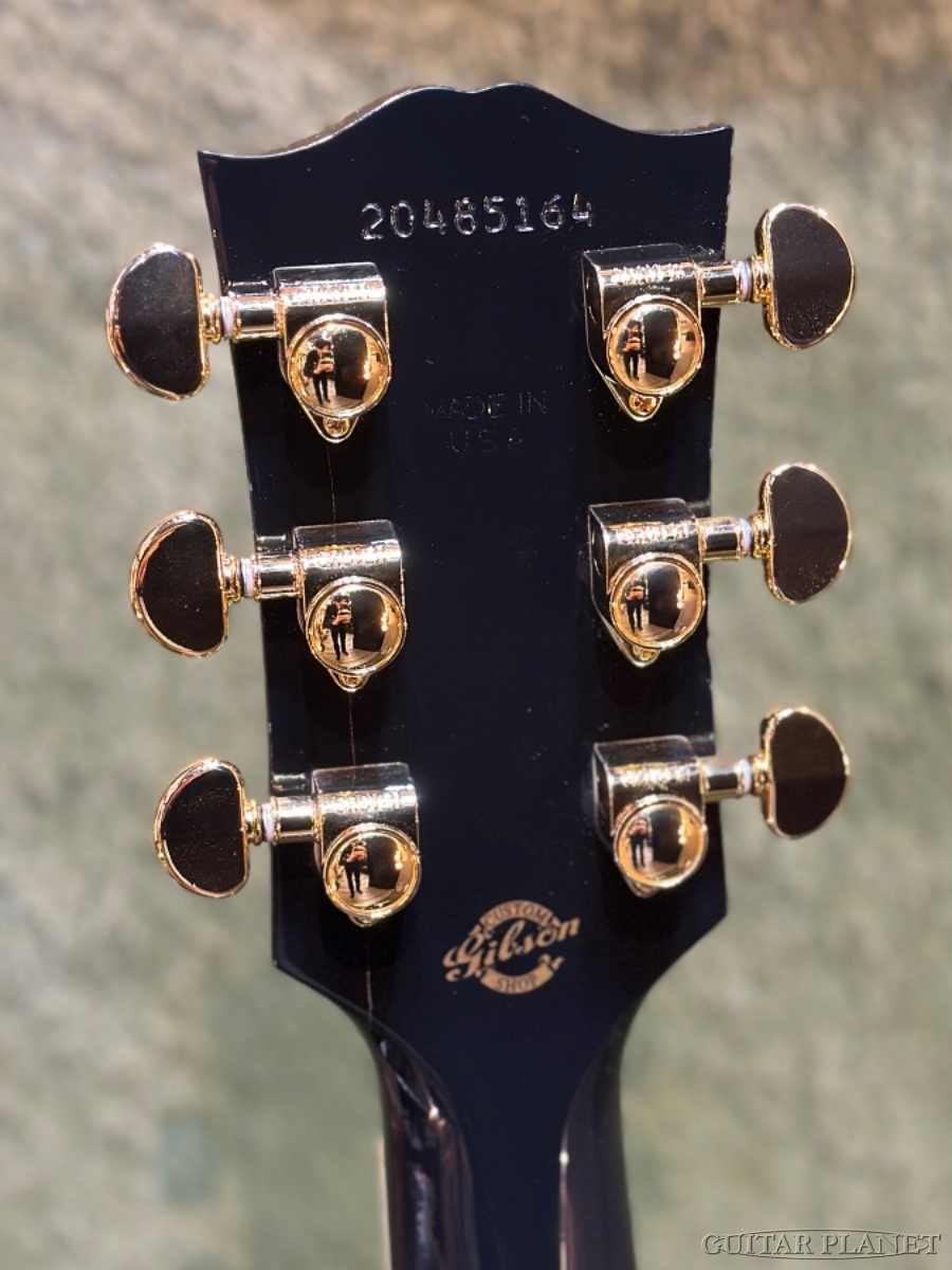 トップとバックの『多層バインディング』、レスポール・スタイルのヘッド形状に輝くのは、マザー・オブ・パールの『カスタム・スプリット・ダイヤモンド・インレイ』。指板にもマザー・オブ・パールの『カスタム・ブロック・インレイ』、ゴールドの『Grover Rotomatic』チューナー等、充実した仕様を誇ります。