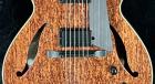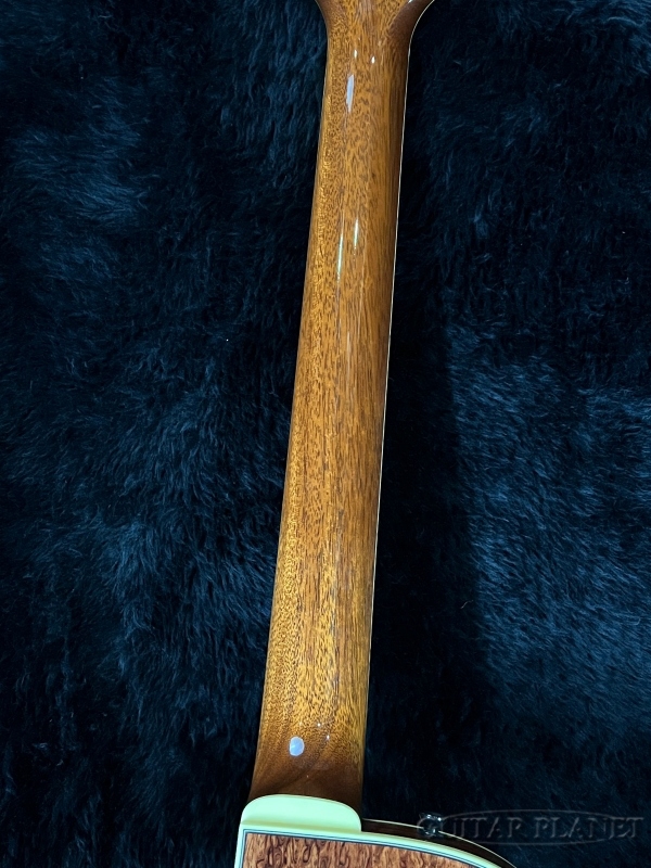 15インチ幅薄胴(45mm)5プライ・プレミアム・エキゾチックウッドボディに、エボニー指板を貼り合わせたマホガニーネックがセットネック構造にてジョイントされております。