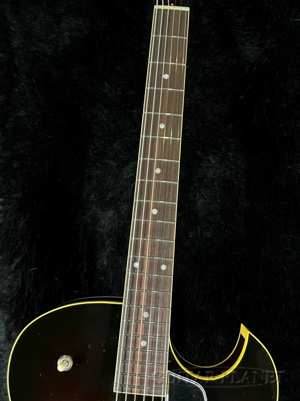 16インチ幅のラミネイトメイプルボディに、ローズウッド指板を貼り合わせたマホガニーネックがセットネック構造にてジョイントされております。