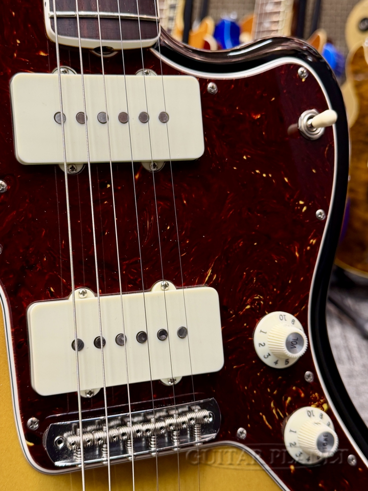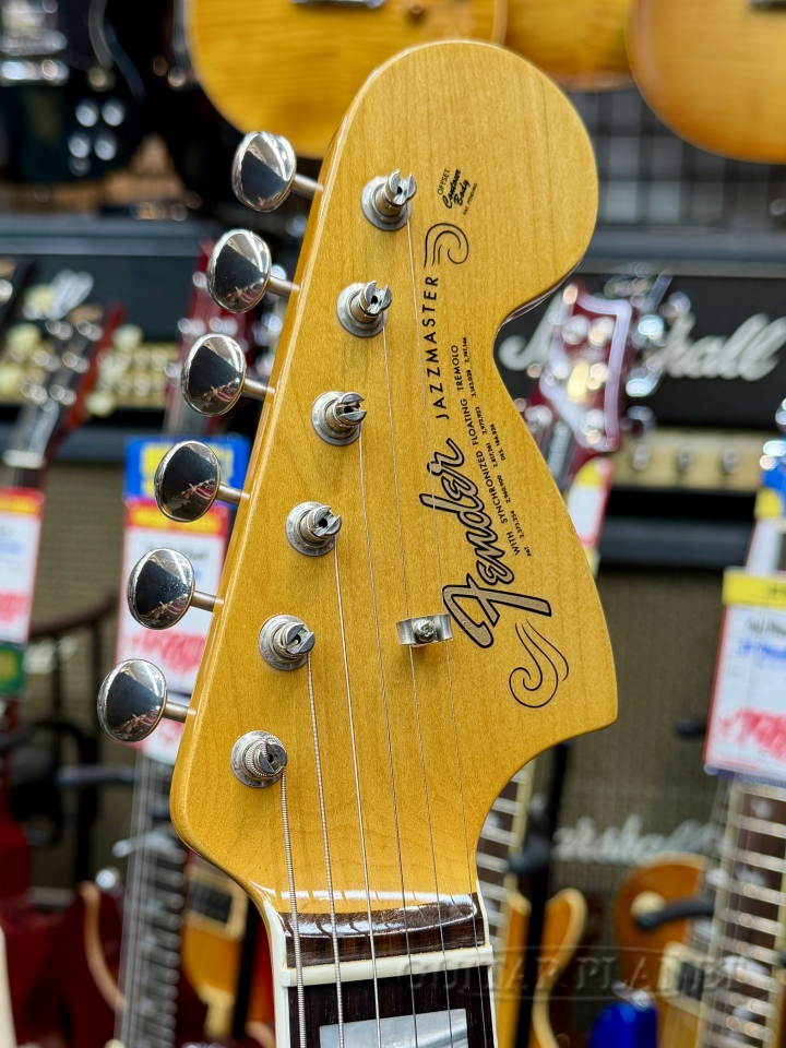 The large, offset (asymmetrical) body features the "Pure Vintage '66 Single-Coil Jazzmaster" pickups that define the Jazzmaster sound, and the "Pure Vintage Floating Tremolo," known for its smooth action and relaxed tension, producing a captivating sound distinct from Telecasters and Stratocasters.