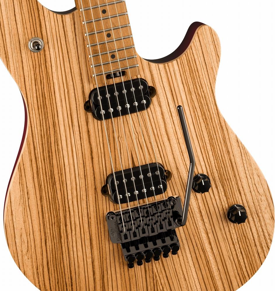 EVHブランドのFloyd Rose SpecialブリッジとR2ロッキングナットは、激しいアーミングを行なっても堅牢にチューニングを維持します。