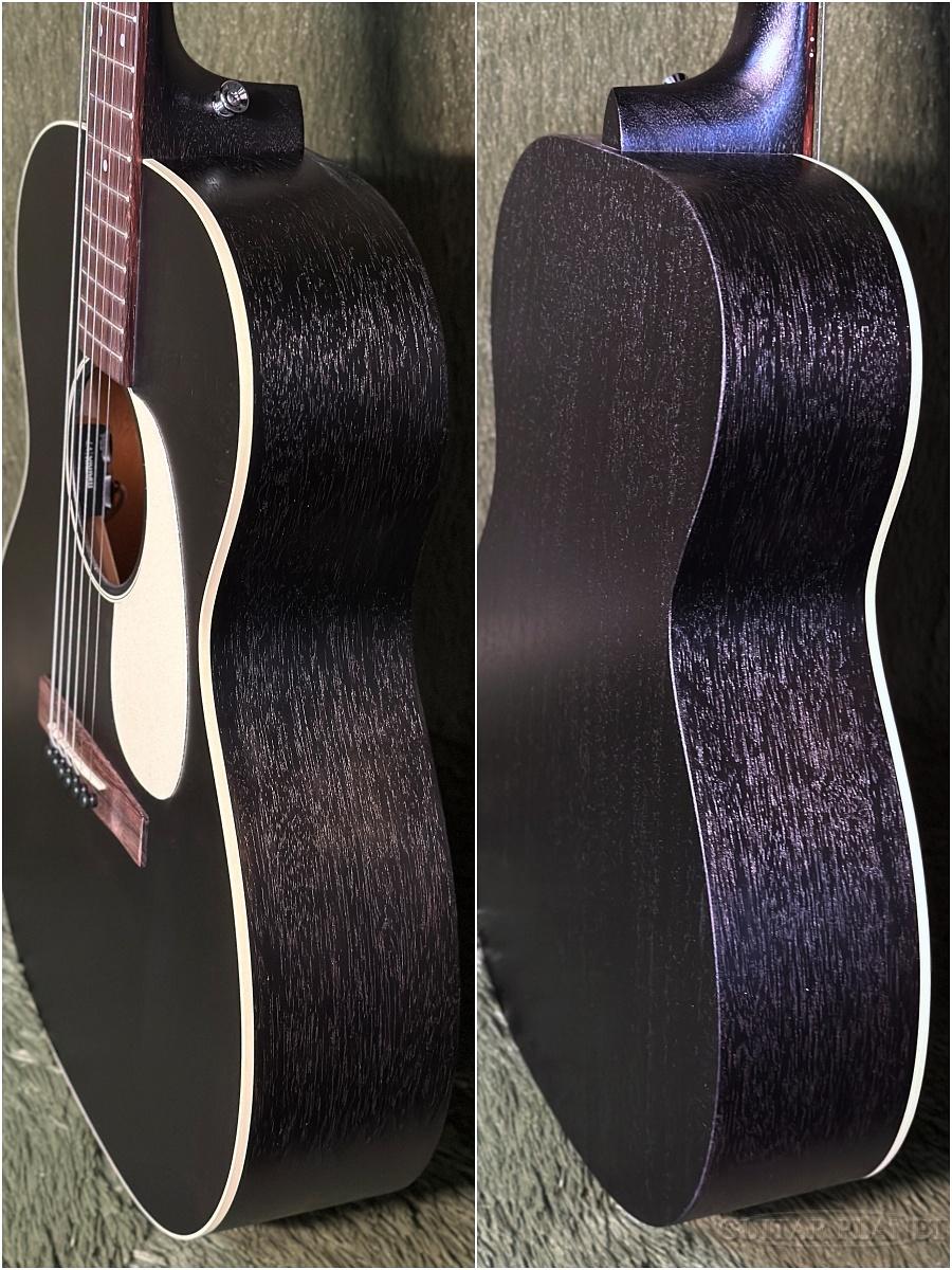 「000-17E Black Smoke」は、ヴィンテージテイストのルックスと現代的な実用性を兼ね備えた、17シリーズのエレクトリック仕様モデル。落ち着いた“Black Smoke”フィニッシュが印象的で、シンプルながらも存在感のある一本です。