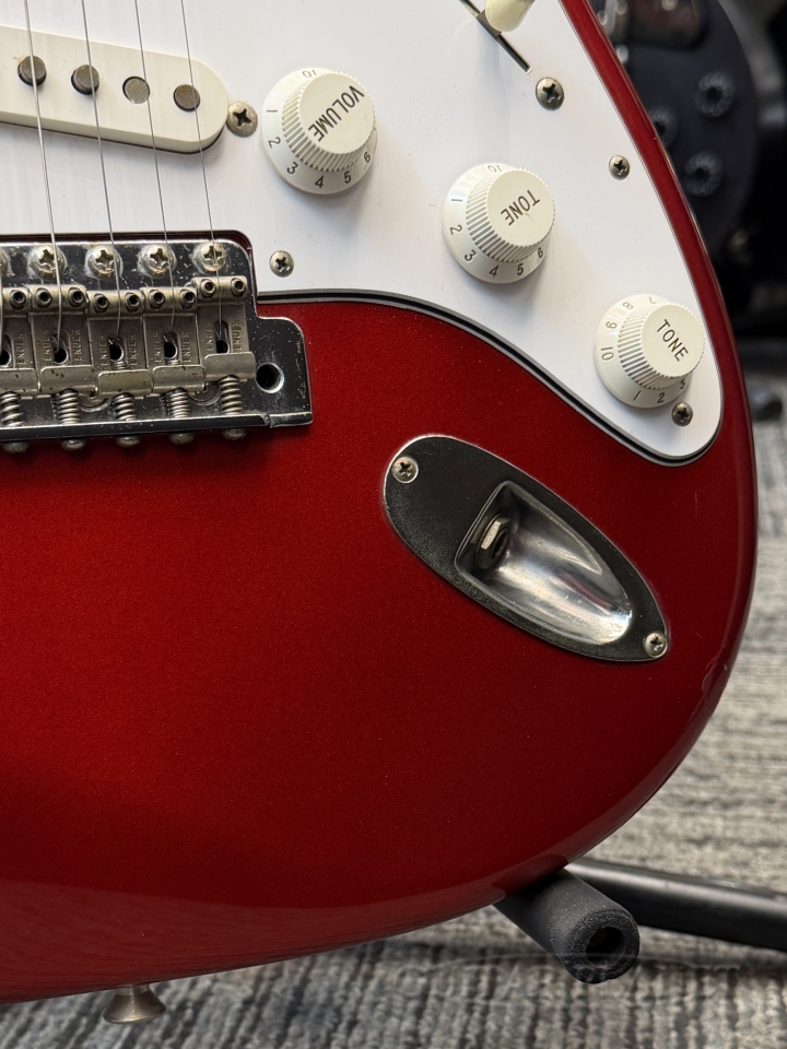 This guitar boasts the classic Fender custom color "Candy Apple Red," a pop and attractive finish.