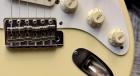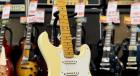 It faithfully reproduces the features of a 1957-style Stratocaster, including a one-piece maple neck and an eight-screw, one-ply pickguard.
