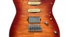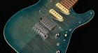 ボディトップには美しい杢目が印象的な「フレイムマホガニー」を採用しています。カラーにはアンドレの愛用するカスタムモデルを再現したブルーバーストに加え、チェリーサンバーストもラインナップ。アンドレの求めるサウンドに近づけるため、ボディにはマホガニーに近く、中音域に特徴のあるオクメ材を用いています。