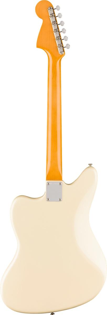 特殊な機能を豊富に備えたこのモデルは、ジョニーが改造した1965年製ジャガーをベースにしており、目の肥えた型破りなギタリストに理想的な仕様を備えています。2基のカスタムワウンドBare Knuckle Johnny Marrシングルコイルピックアップは、バンドサウンドに埋もれない、鋭いトーンを生み出します。4ポジションブレードピックアップスイッチには、高出力で太いトーンを得るためのシリーズワイヤリングオプションを備え、アッパーホーンに配された2基のスライドスイッチは、グローバルまたはポジション4でローエンドをロールオフし、ブライトなトーンを生成します。ジョニー所有ののオリジナルギターからカスタムプロファイリングされたメイプルネックには、ヒールにヴィンテージスタイルのトラスロッドを採用し、7.25インチラジアスローズウッド指板には22本のヴィンテージフレットが配されています。ジョニーの指定仕様に変更されたJaguarブリッジは、Mustangサドル、チューニングとパフォーマンスの安定性を向上させるクロムカバーとナイロンポストインサートが加えられています。ヴィンテージスタイルのフローティングトレモロには、ナイロンスリーブがインサートされたトールトレモロアームを付属し、どのようなポジションでも確実に固定することができます。