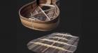 BAR4GCEのブリッジは、プレミアムアマラエボニーで作られており、その硬さ、明確でバランスの取れたトーン、優れたサステイン、湿度耐性で知られています。これにより、チューニングの安定性が保証されます。アイコニックな逆さのブロモ山のデザインは、強さと美的魅力を兼ね備えており、楽器の特徴的なディテールとなっています。