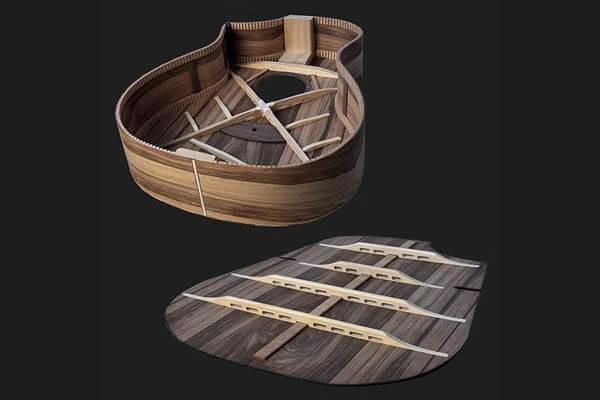 特許取得済みのToneFlowブレイシングシステムを搭載した、オールソリッドマンゴーウッドトップ、バック、サイドは、ギター全体にわたって振動を増幅します。この先進的なデザインは音域を強化し、豊かで繊細な音の特性を引き出し、優れた聴覚体験を提供します。
