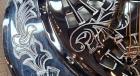 最大の特徴は、全面に施された美しい彫金とクローム仕上げのメタルボディ。