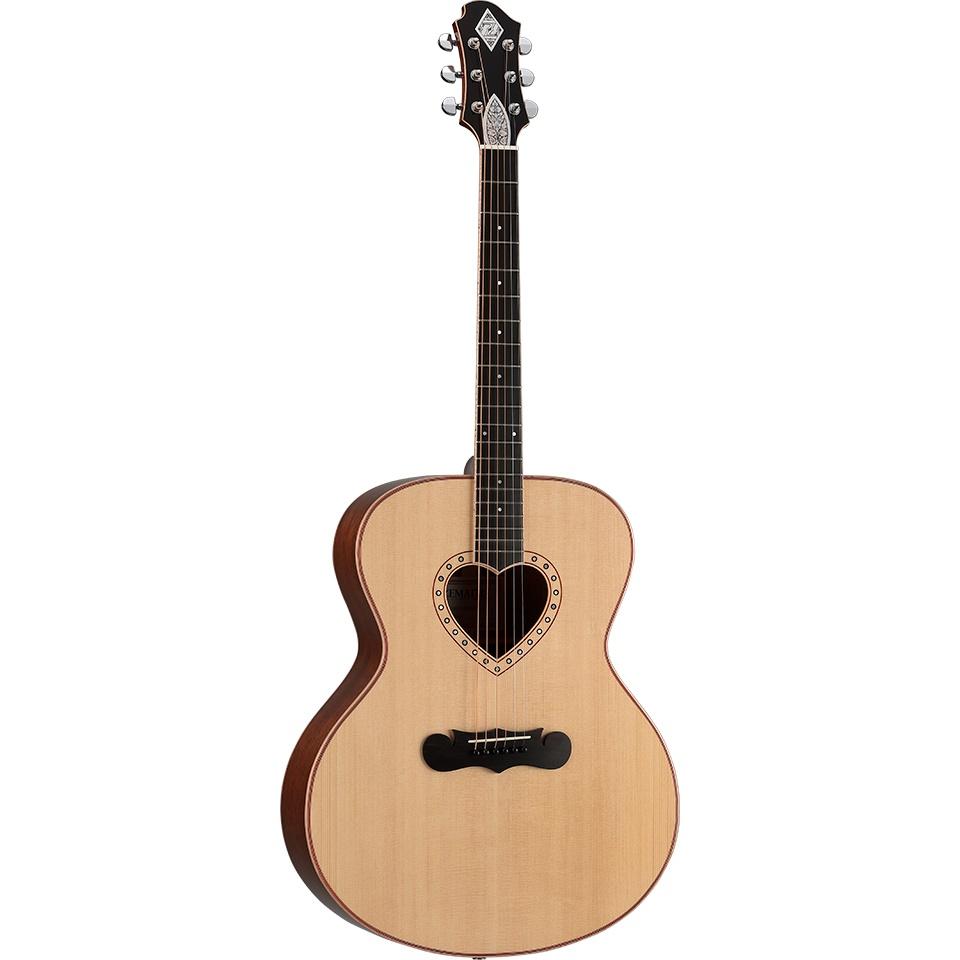 AAJ-1000HSD-Eは、ゼマイティスならではの伝統的なハート型サウンドホールの周りに、マザー・オブ・パールのドット・インレイをちりばめた特徴的なロゼッタを採り入れたモデルです。