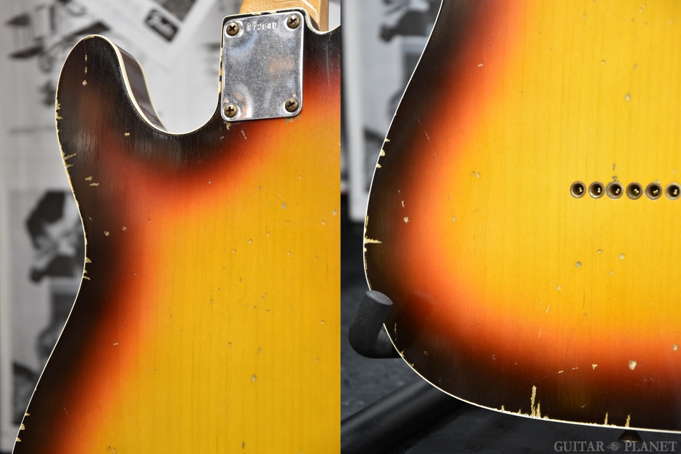 ピックアップが交換されており、微細な擦り傷や打痕、金属パーツの錆等ございますが使用感は少なく、