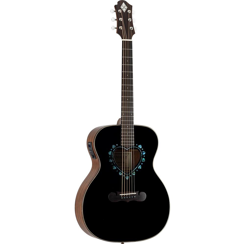 ハート型サウンドホールのオーケストラ・モデルのCAF-90Hは、マザー・オブ・パールのダイヤモンド・インレイが輝く特徴的なヘッドストックを持ったマホガニー・ネックにローズウッド・フィンガーボードを採用した20フレット仕様の14フレット・ジョイントとなっています。