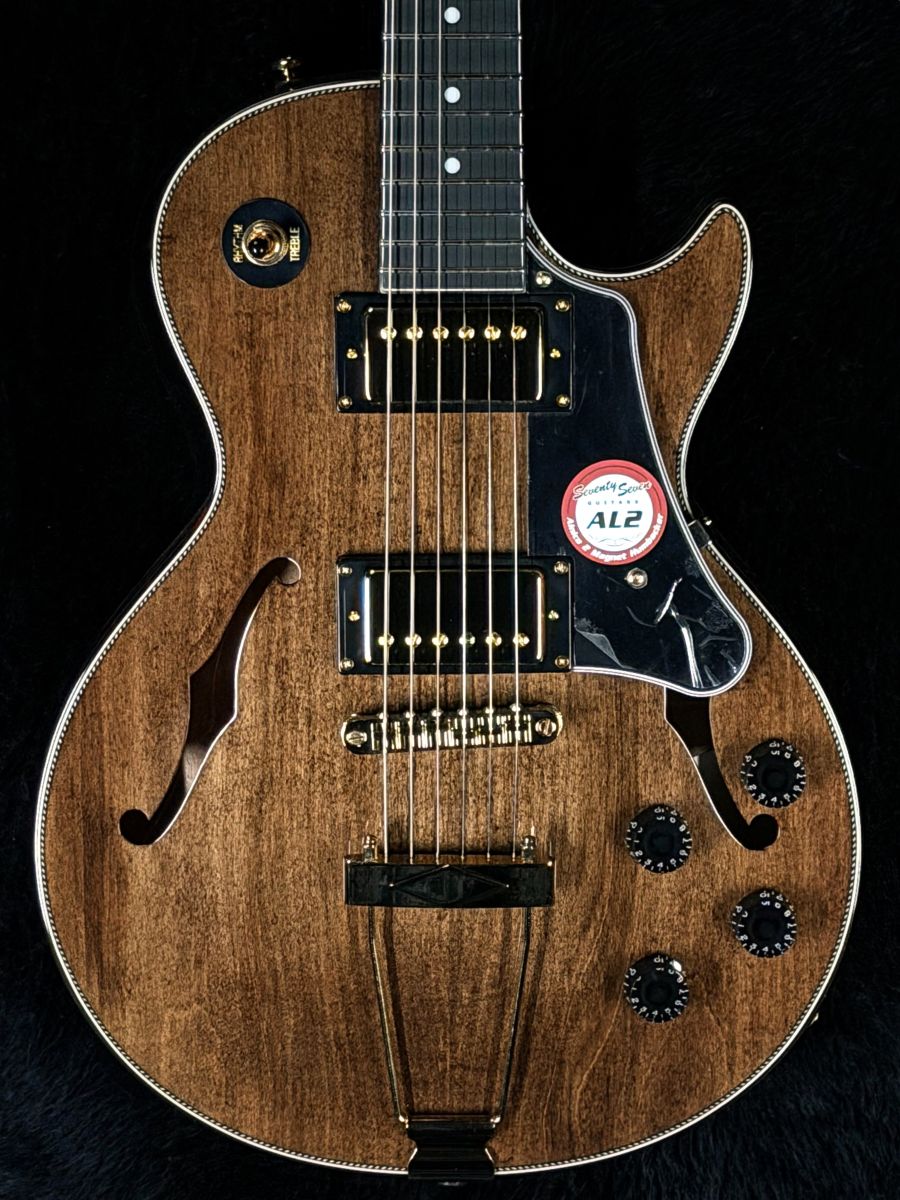 アルニコ2マグネットを採用したSeventySevenオリジナルピックアップ、 「SeventySeven AL2」を搭載。クリーントーンではきらびやかな鈴鳴り感を表現しつつも耳に痛くない暖かさを併せ持ち、ドライブをかけると歯切れの良いエッジの効いたクランチサウンドを出力します。プレイヤーの創造力を膨らませて豊かな演奏表現を生み出します。