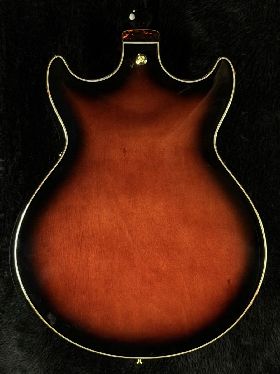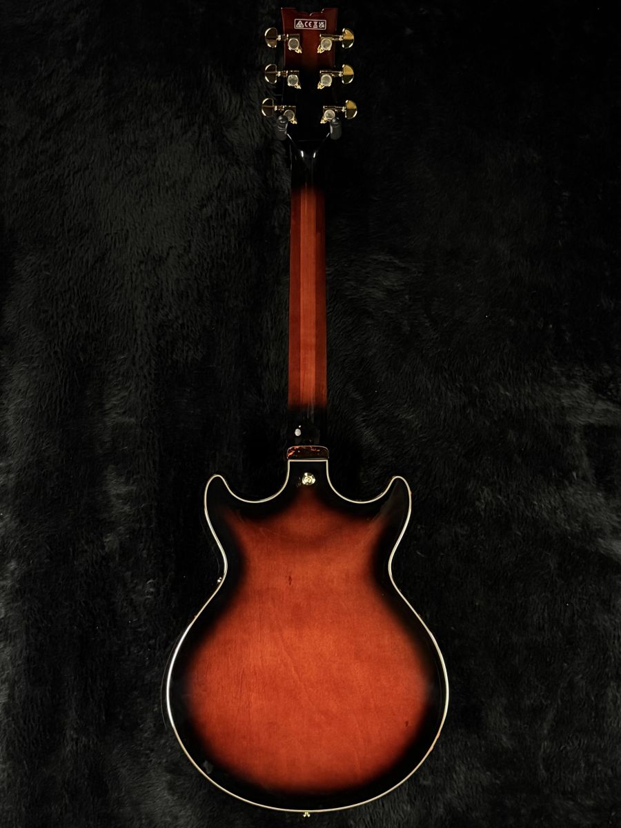 ブリッジ下部にのみアンカー固定用のウッドブロックを設置しておりますが、所謂センターブロックは無く、ホロウボディ構造となっております為、軽量で豊かなボディ鳴りが特徴です。
