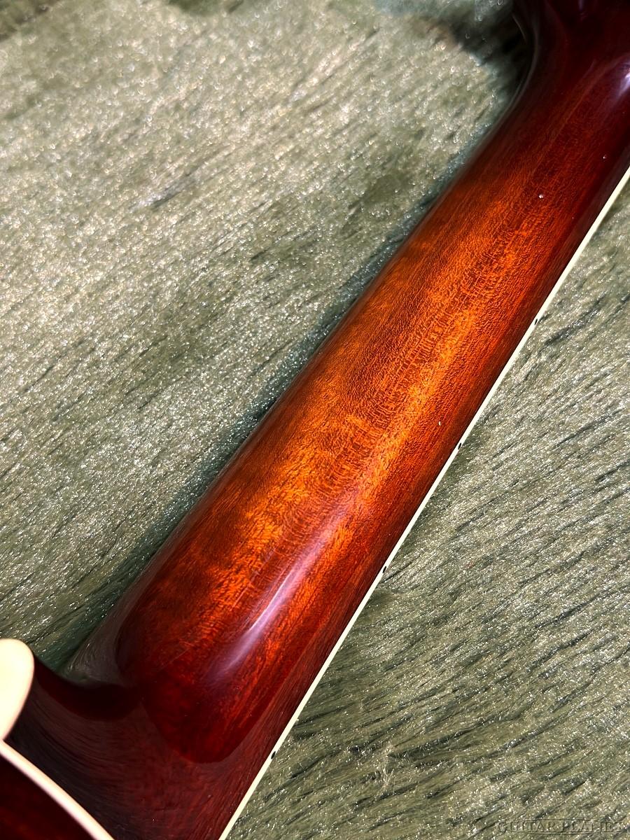 ネックは僅かに順反り傾向、トップ落ち(経年変化による表板の歪み)が軽微ですがやや見られます。
